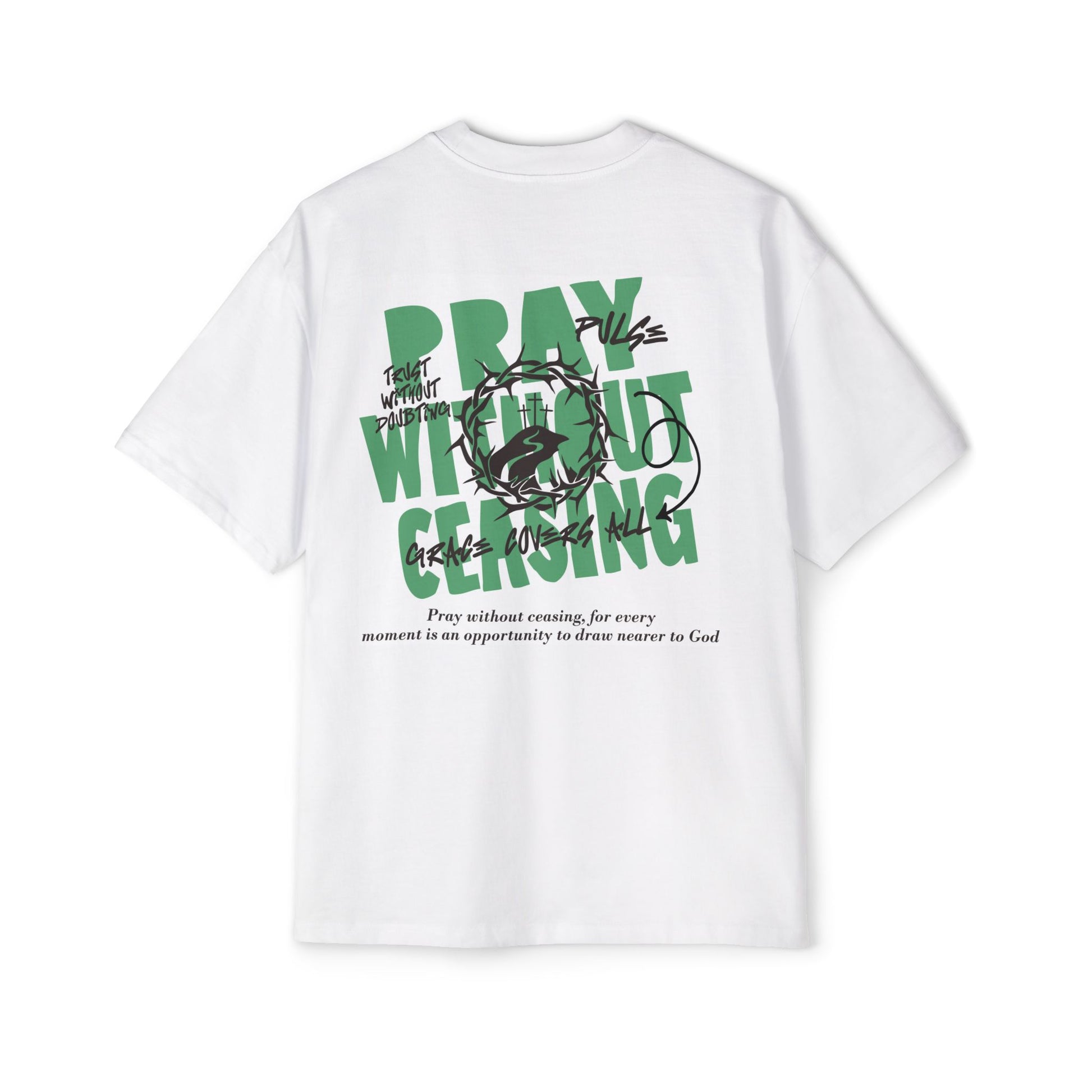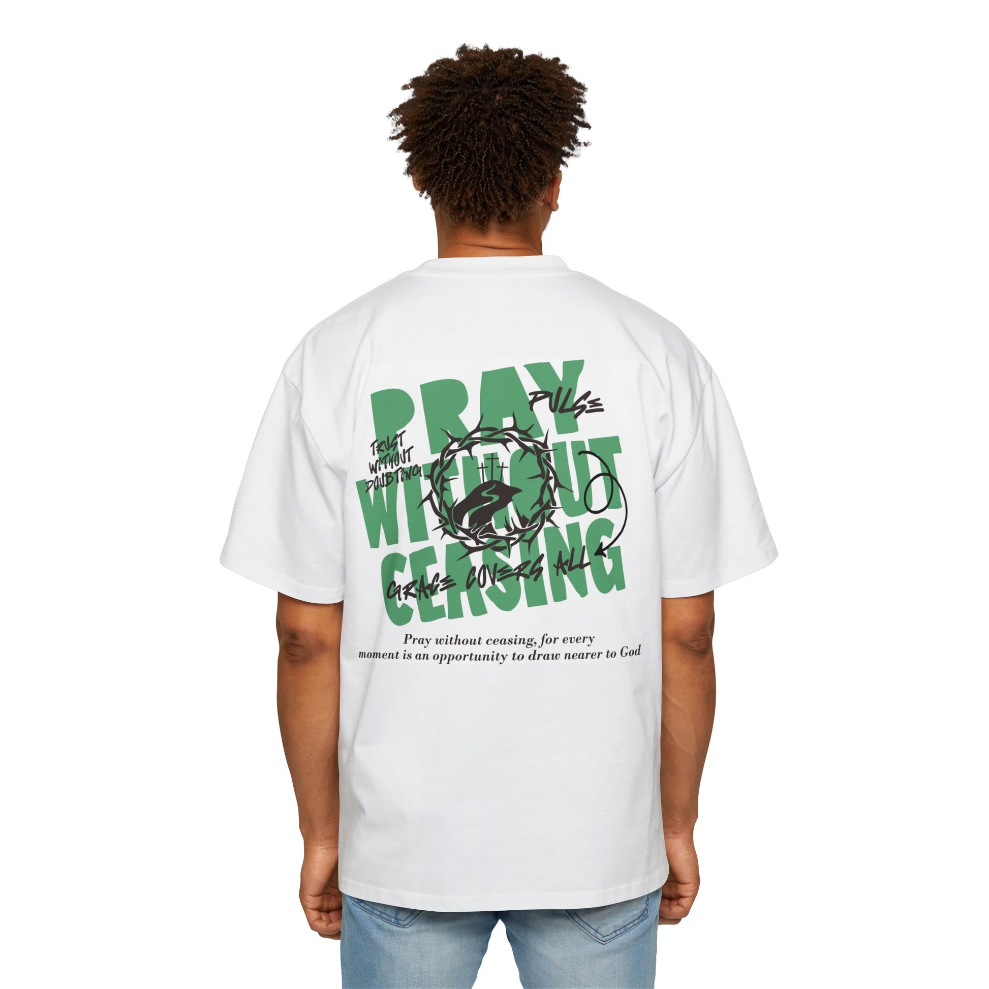 Experience comfort and style with this Men's Heavy Oversized Tee. Perfect for casual outings or lounging at home, this tee promotes a laid-back vibe that encourages relaxation. The unique graphic design adds a touch of inspiration, making it a great choice for individuals seeking a deeper connection in their everyday life. Ideal for men who enjoy fashion that speaks to their values, this t-shirt is perfect for spiritual gatherings, casual meetups, or simply making a statement during any occasion. Celebrate your faith or gift it to a loved one on holidays like Christmas, Easter, or during retreats and community events.